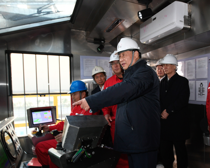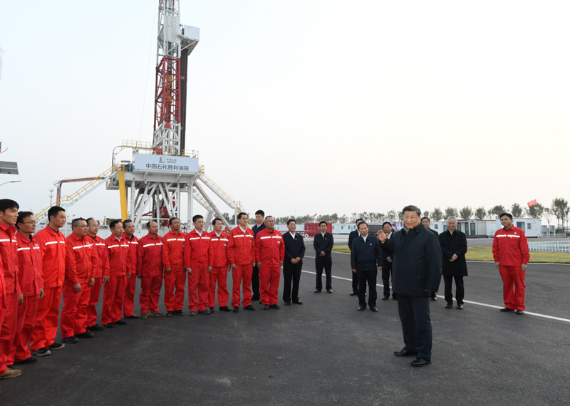 離開研究院,習近平來到位于東營市萊州灣的勝利油田萊113區(qū)塊,了解二氧化碳捕集、利用與封存技術研發(fā)應用情況。他登上二層鉆井平臺,察看鉆井自動化設備,走進操作室,同正在作業(yè)的工人親切交流。今年是勝利油田發(fā)現(xiàn)60周年。習近平代表黨中央向為我國能源事業(yè)作出貢獻的石油工作者們表示崇高敬意。習近平叮囑大家繼承和發(fā)揚老一輩石油人的革命精神和優(yōu)良傳統(tǒng),始終保持石油人的紅色底蘊和戰(zhàn)斗情懷,為社會主義現(xiàn)代化建設事業(yè)作出更大貢獻。