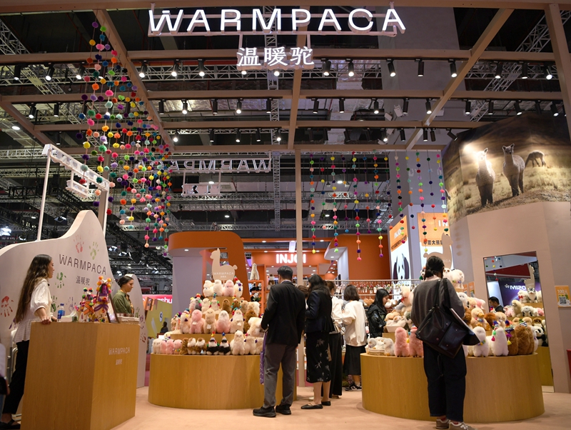 這是11月5日在上海拍攝的第七屆進(jìn)博會(huì)秘魯“溫暖駝”展臺(tái)。今年,秘魯品牌“溫暖駝”連續(xù)第七年亮相進(jìn)博會(huì),受到更多中國消費(fèi)者的喜愛。新華社記者 金馬夢(mèng)妮 攝