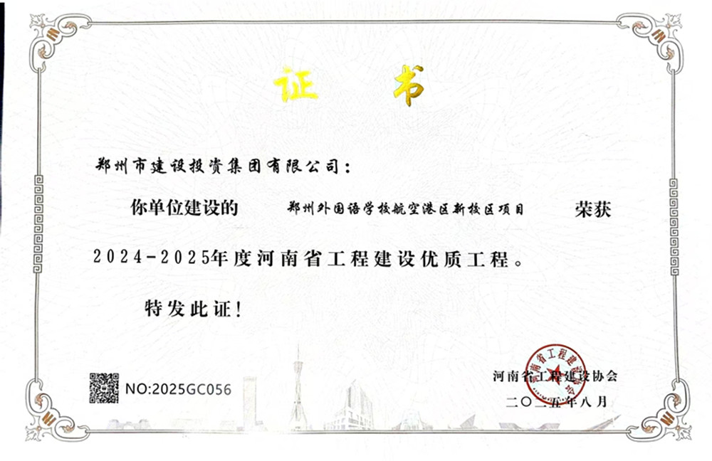 近日,由集團(tuán)公司代建的鄭州外國(guó)語學(xué)校航空港區(qū)新校區(qū)項(xiàng)目榮獲2024-2025年度河南省工程建設(shè)優(yōu)質(zhì)工程榮譽(yù)。