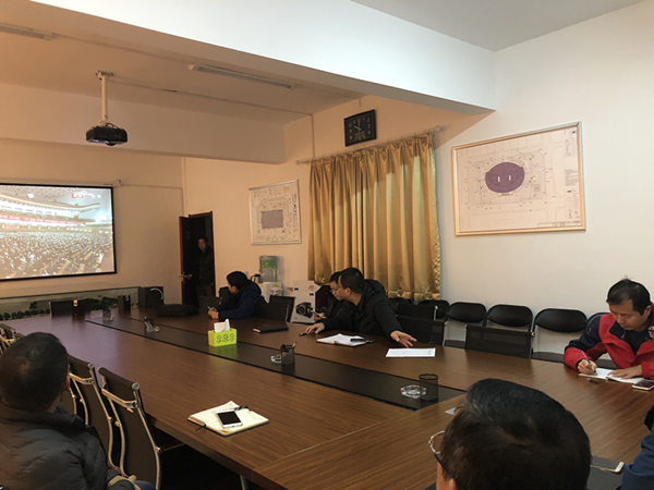 文博中心項目部:利用有限場地,通過直播平臺或手機(jī)端組織員工收看會議盛況。