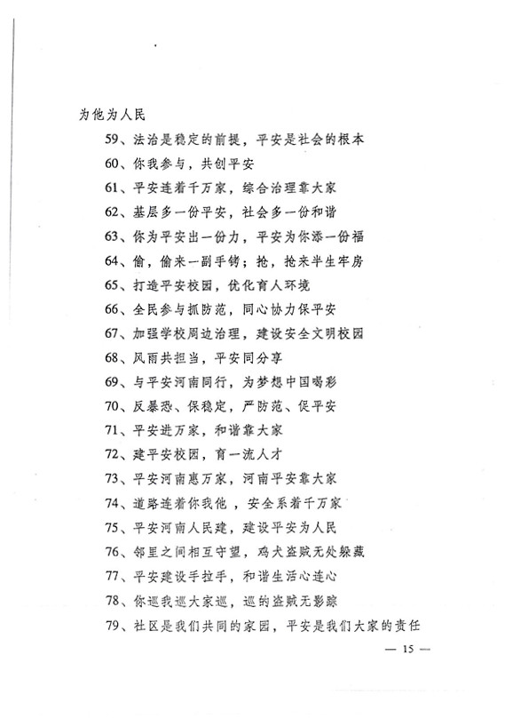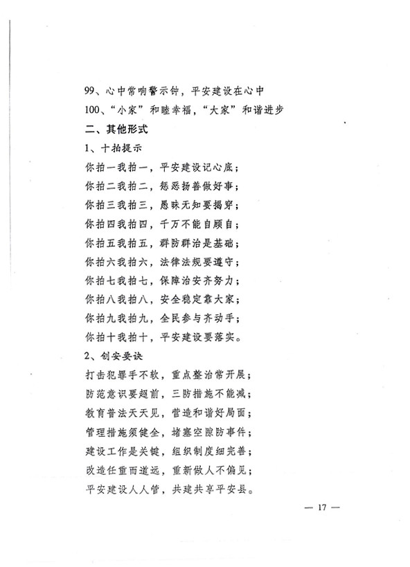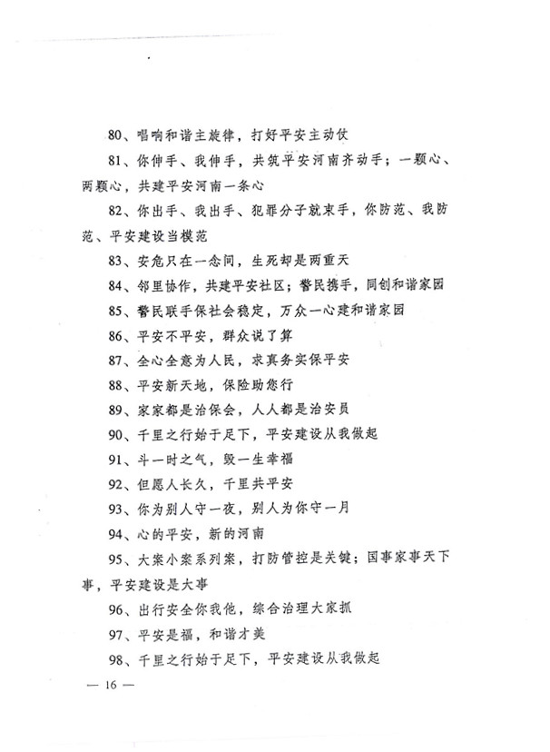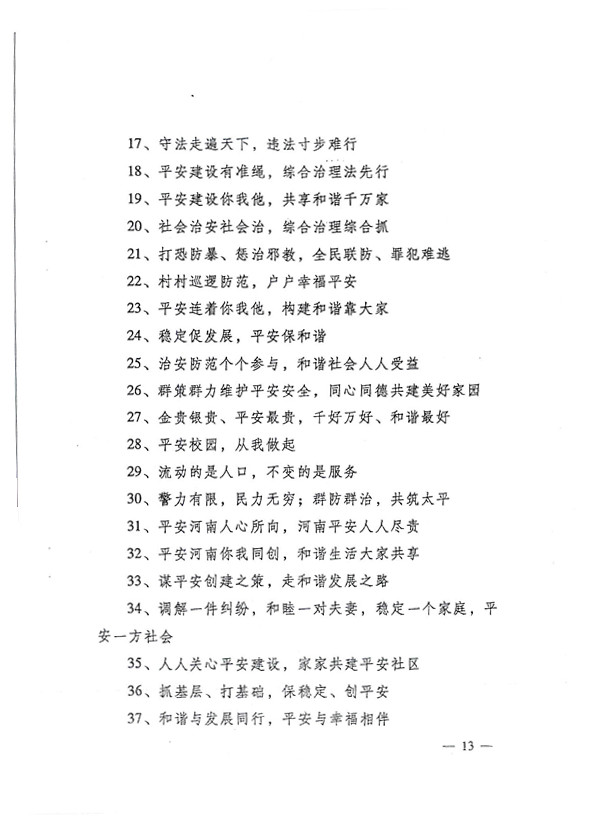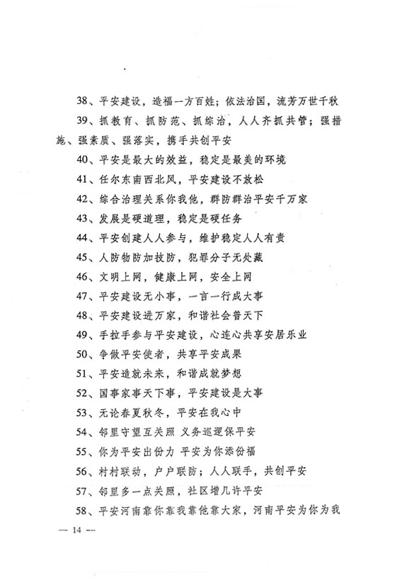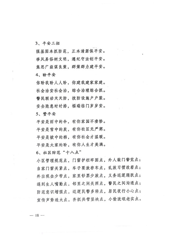平安兩字重千斤,社會穩(wěn)定得民心。 創(chuàng)建平安人人有責,構建和諧人人參與。
